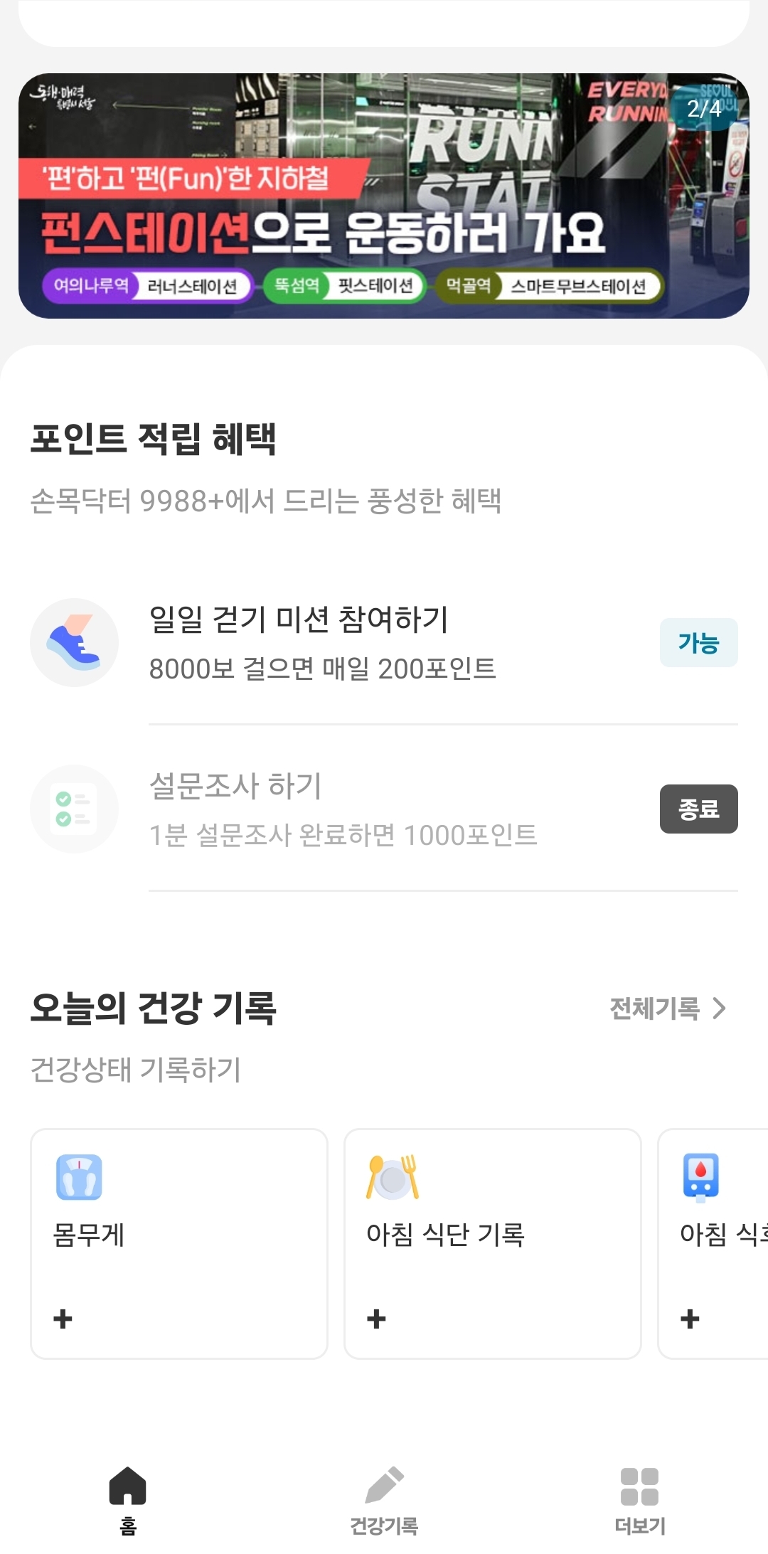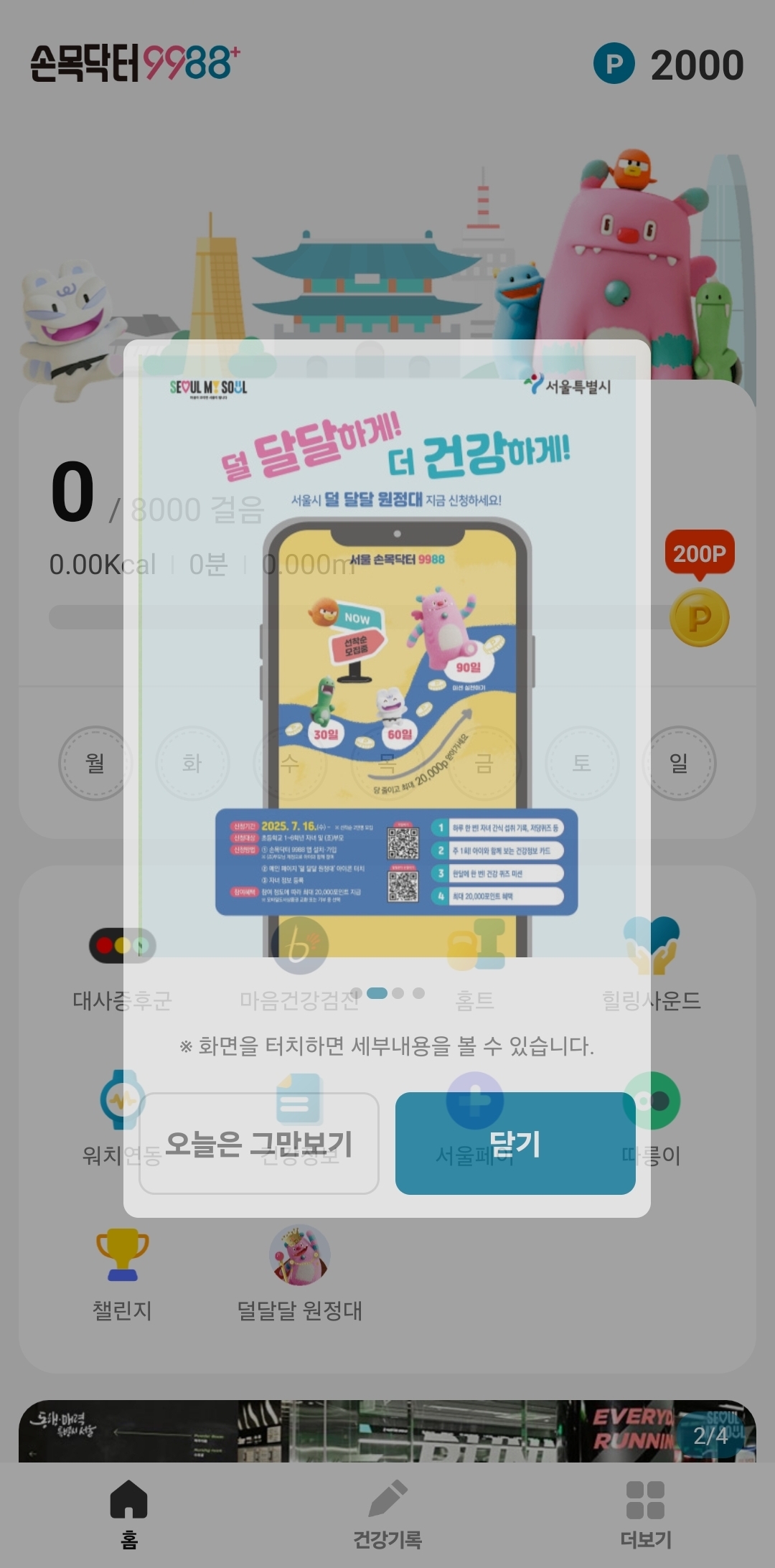 하루에 8천보를 채우면 200p를 받을 수 있어요.