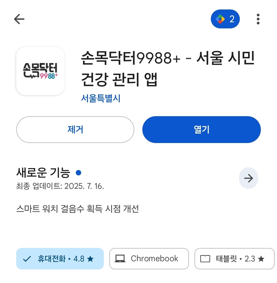 포인트를 서울페이로 전환할 수 있는 "손목닥터 9988+"라는 앱입니다.