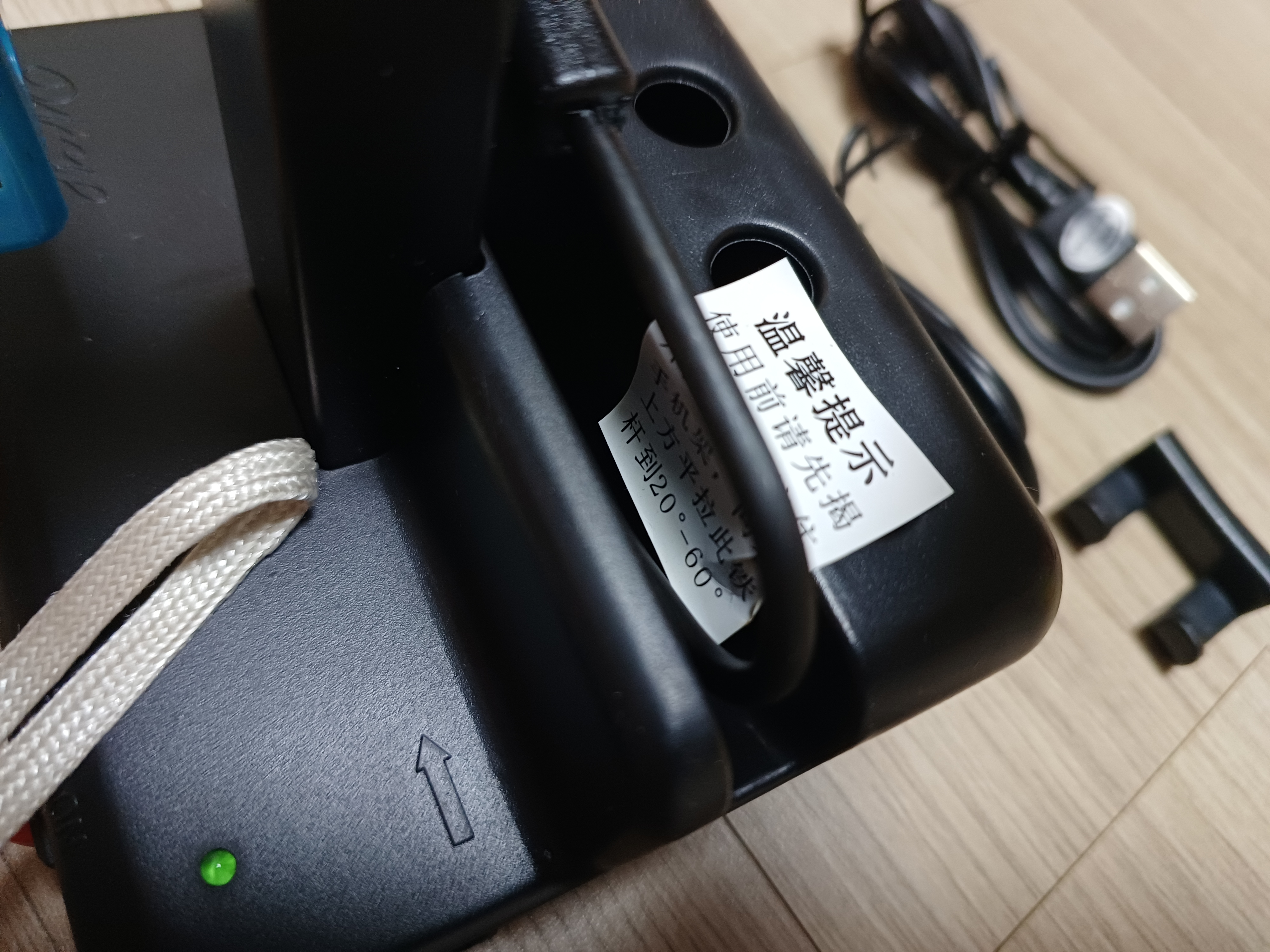 박스를 열면 본체와 작은 고정기, 전원케이블 2개가 들어있어요.