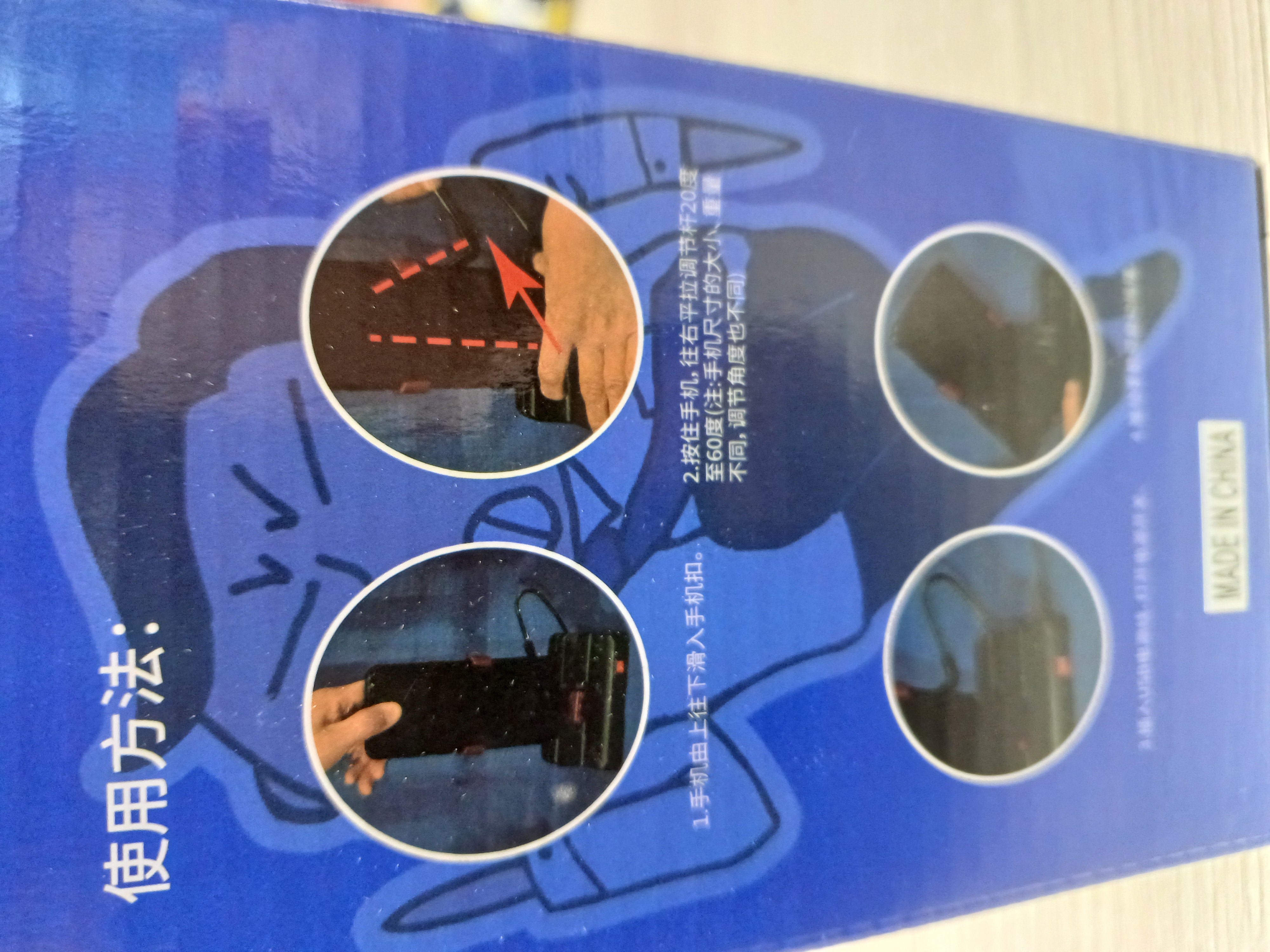 본체 뒤에 있는 걸쇠 각도를 조절한 후 핸드폰을 넣고 수동으로 1회 회전하면 됩니다.